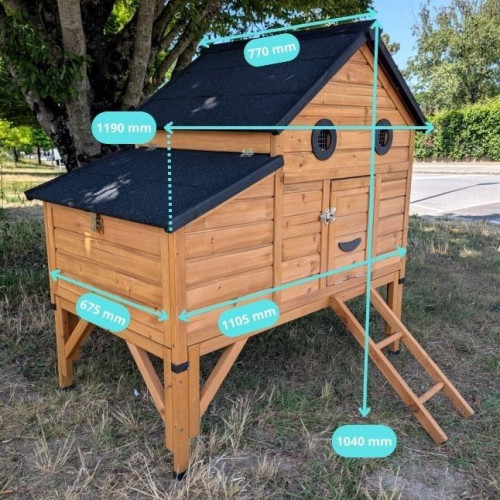 Ce modèle combine fonctionnalité, solidité et esthétique pour offrir à vos poules un habitat confortable et durable à un excellent rapport qualité-prix.